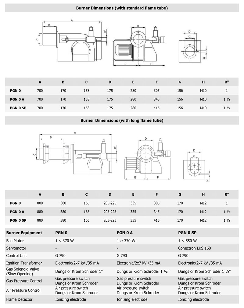 Single Stage Gas Burners: PGN0 – PGN0A. Two stage Gas Burner :PGN0SP
