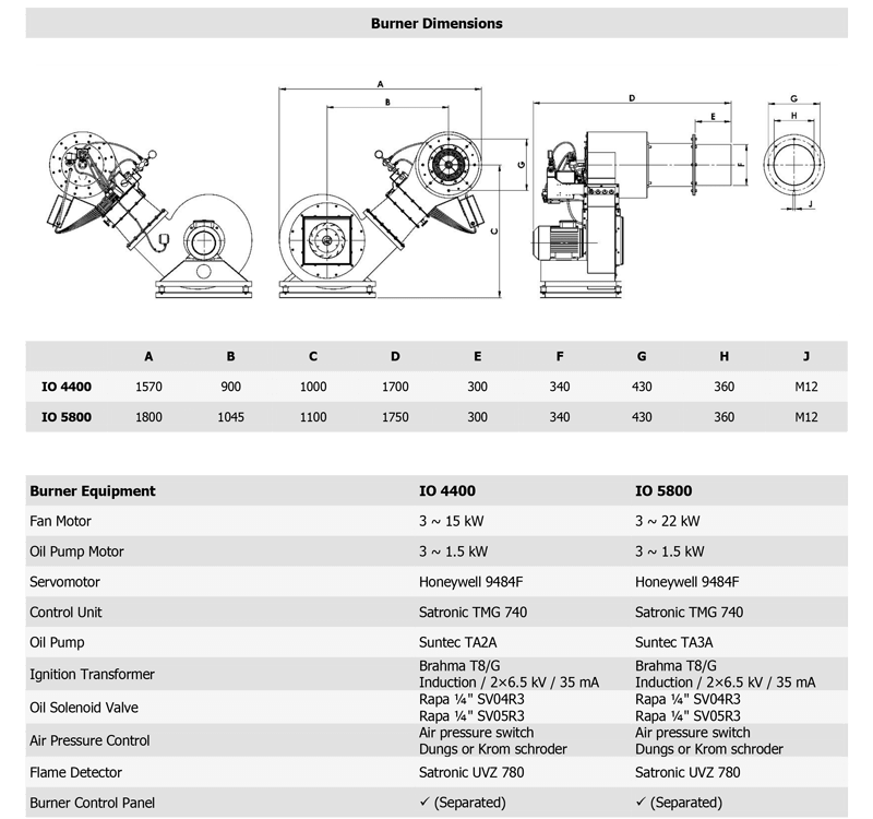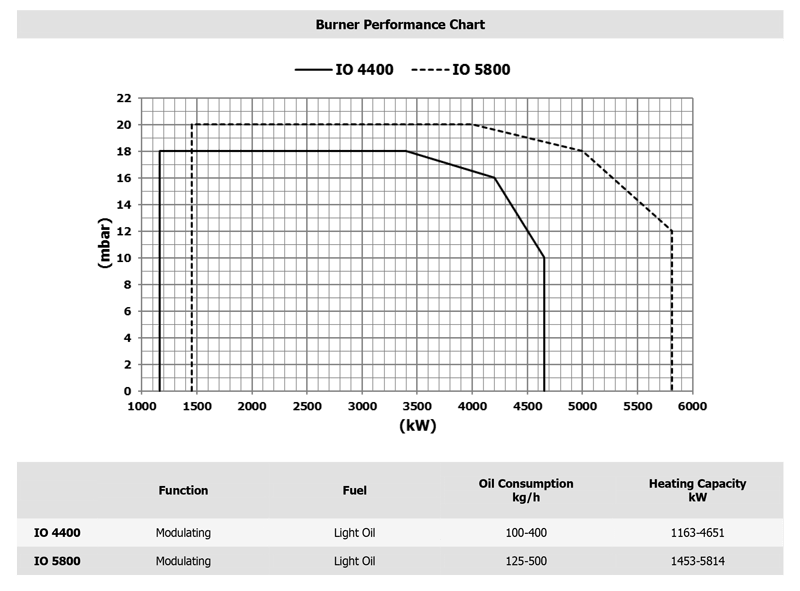 Fuel: Light oil. Oil consumption 100-400 kg/h. Heating capacity from 1163-4651 kW.