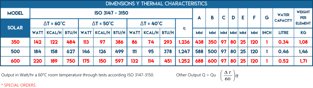 The radiator element SOLAR of ALL THERM, an Aluminium Radiator for Central Heating. Powerful radiator of injected aluminium, ideal for the new construction and refurbishing thanks to its high temperature performance. The SOLAR radiator is made element by element with die-cast aluminium alloy; and guarantees a lower thermal inertia, which leads to a high energy saving and comfort.